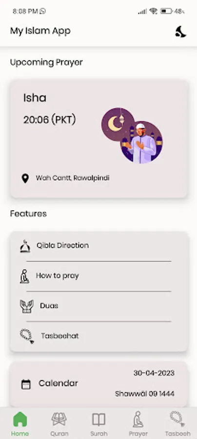 The app has a tasbeeh counter for users to count the zikr they are doing. The app also has an Islamic calendar, to know the Islamic dates, events etc.