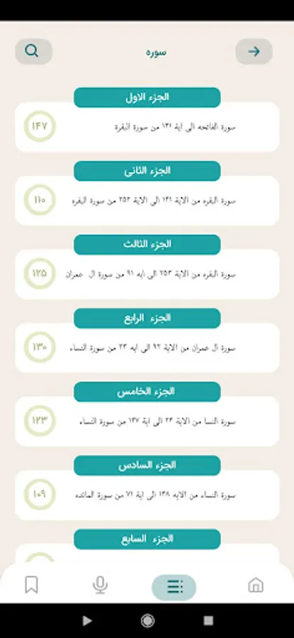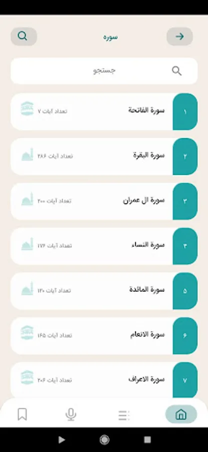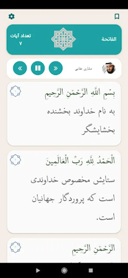 The complete audio Qur'an can satisfy the recitation of the screen from chapter to chapter, as well as verse by verse and island.