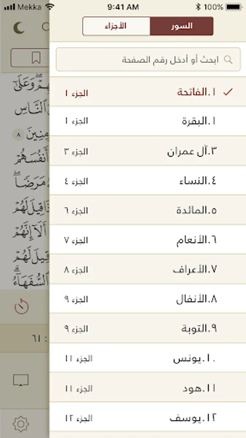 - Choose timing frame to listen a part from Surah, automatic replay features.