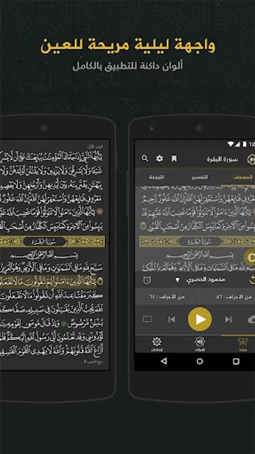 Unique and special Quranic design, Holy Quran memorization through the feature of repeating a verse or a number of verses, and night mode.