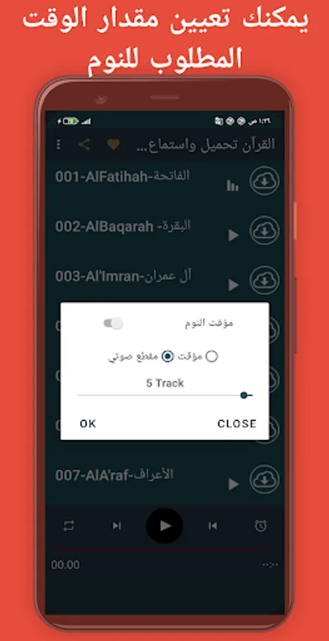 You can share the application link with friends and family on social media so that they can benefit from the Noble Qur’an program with the voice of the reciter Abdel Wadood Hanif and enjoy its wonderful features. It also contains an important feature of a sleep timer. You can set the time you want to close the application after the period you choose, which enables you to listen The Noble Qur’an in the voice of Abdul-Wadud Hanif while sleeping without worrying about running the application all night long.