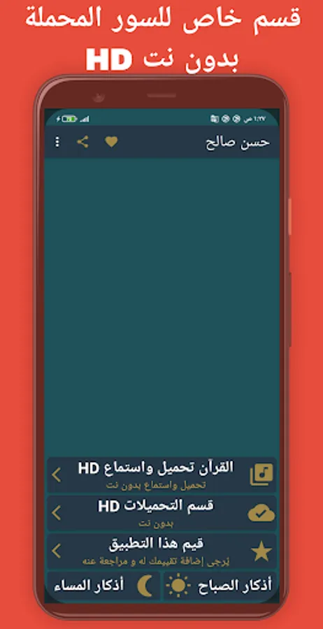 The contents of the application of the Noble Qur’an Abdul Wadud Hanif clear and pure voice. It has a sleep timer and you can also choose the number of audio clips and also turn off the sound during incoming calls. And automatic transmission of the fence. It supports Arabic and English and contains written morning and evening remembrances.