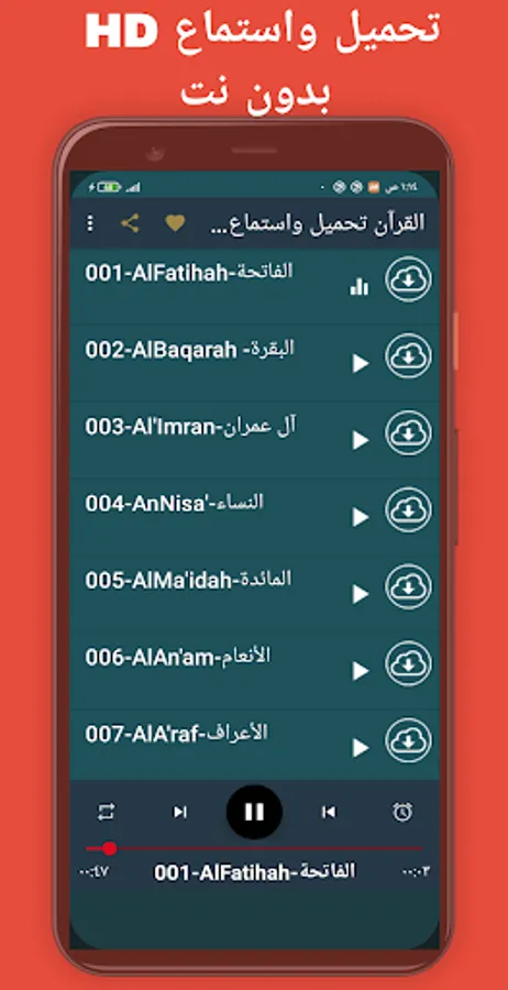 The application of the Noble Qur’an with the voice of Abdul Wadud Hanif allows you to hear the surahs of the Noble Qur’an without the net through your phone, tablet, or any Android device with ease, and the names of the surahs are written in Arabic and English.