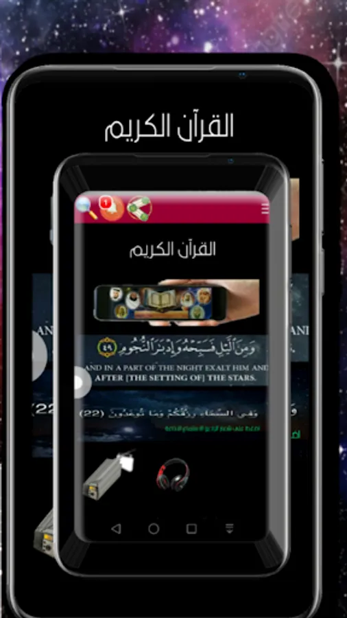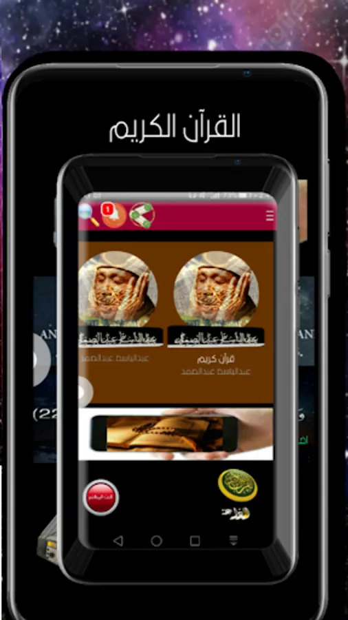 The complete families of the Qur’anic verses and narrations, the complete Noble Qur’an with the voice of Abdul Basit Abdel Samad, the complete Noble Qur’an with the voice of Muhammad Ayoub, the complete Noble Qur’an with the voice of Fares Abbad.