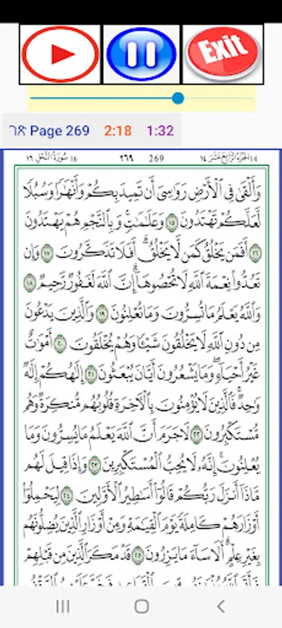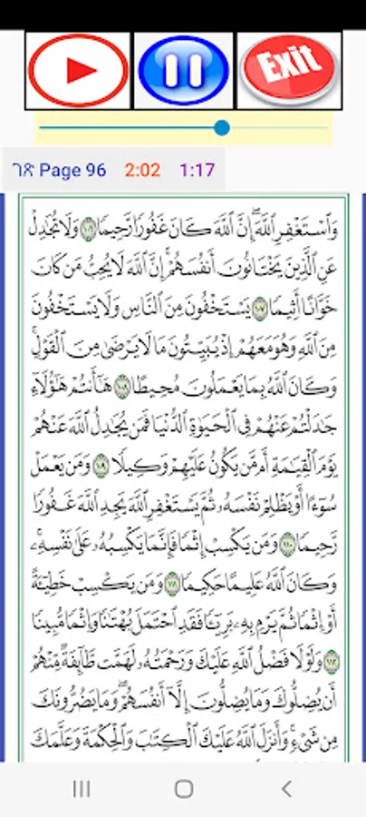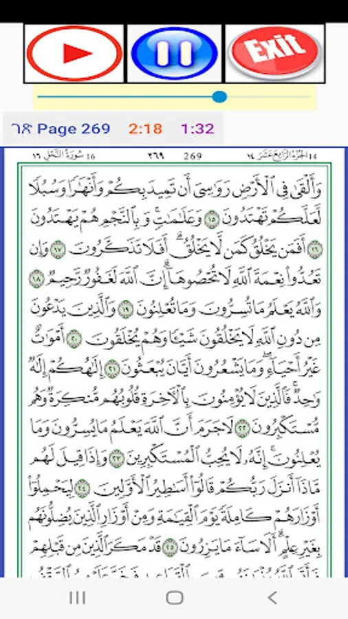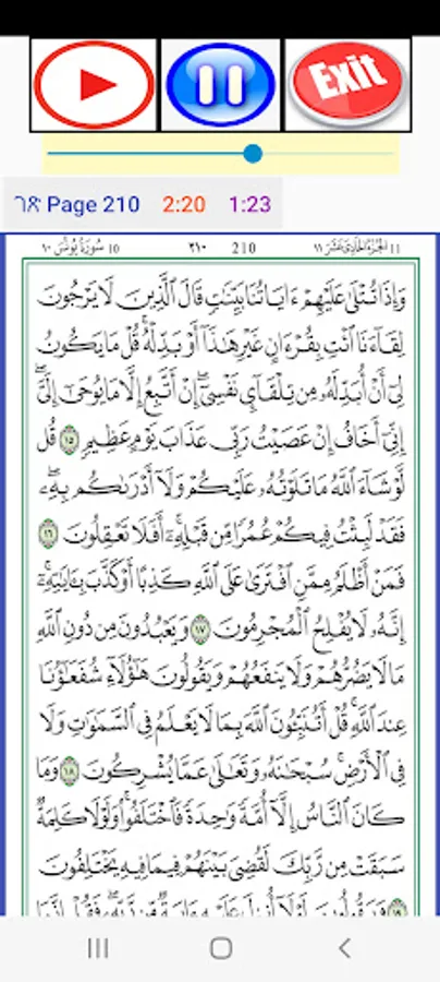 - Listen Quran offline without any internet connection. Just open the App and tap to any Page of Quran. Mp3 file will be play and you can listen Holy Quran for long time.