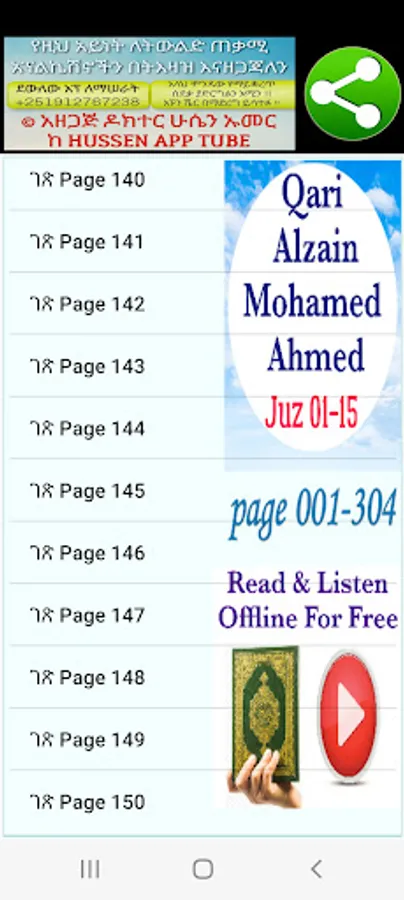 In this way , by this app you can listen Quran offline from Juz 01 to 15 , which is from page 001 to 304