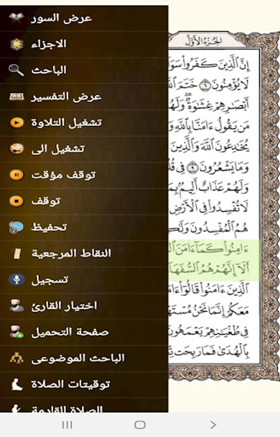 The (Qur’an) application enables you to recite the Holy Book of God with the possibility of hearing a specific verse or several verses by reciting whoever you wish from the readers with the possibility of interpreting them. This verse includes the recitation of the verse and recitation according to the reader, and the possibility of its interpretation, as well as prayer times and the direction of the qiblah. We ask God to make the great Qur’an the spring of our hearts.