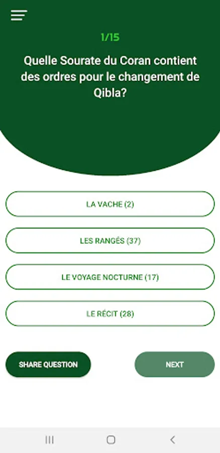 The Quran Quiz is a nice and effective game to learn some important information about the Holy Quran.