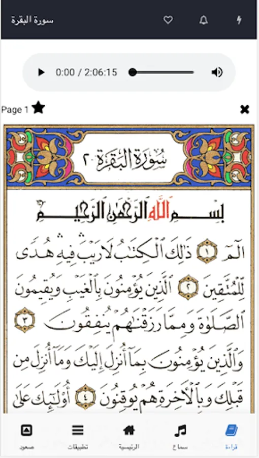 In the name of God, the Most Gracious, the Most Merciful. Surah Al-Baqara application, complete voice and image without Net