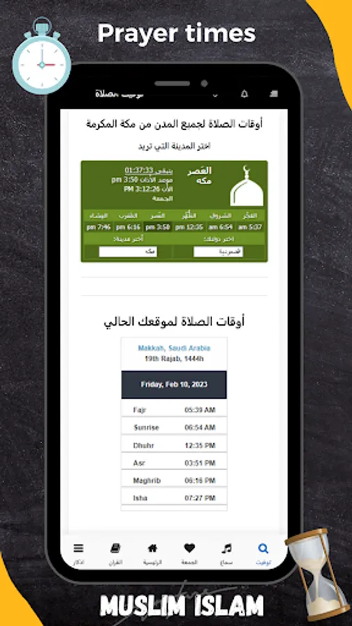 - Accurate prayer times for salah based on Makkah location you can change to any other country.