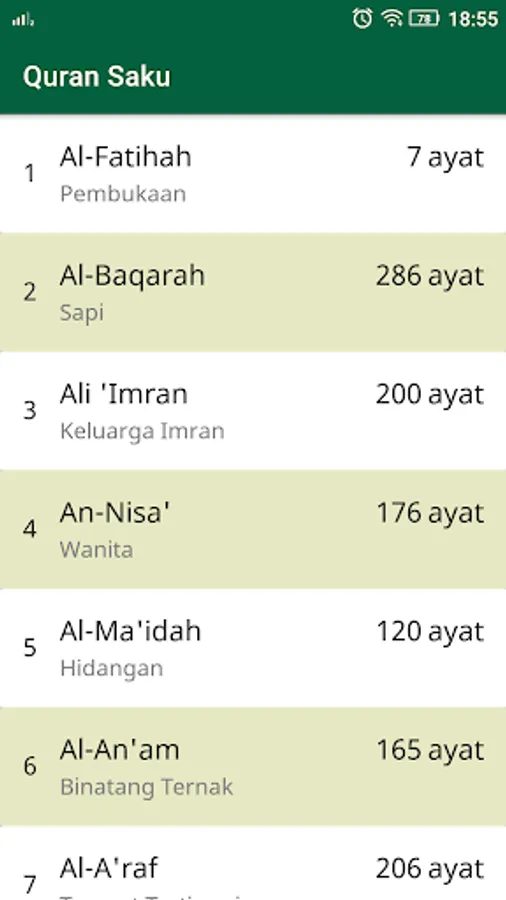 Pocket Quran is an application for reading the Surahs of the Qur'an which is equipped with a translation in Indonesian. In addition, there is also audio to listen to the chanting of the holy verses of the Qur'an.