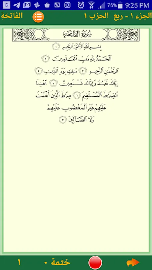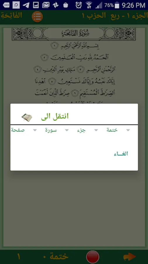 3- Transition (by clicking on the navigation icon on the main reading page) to any conclusion, any part, any surah, or any page