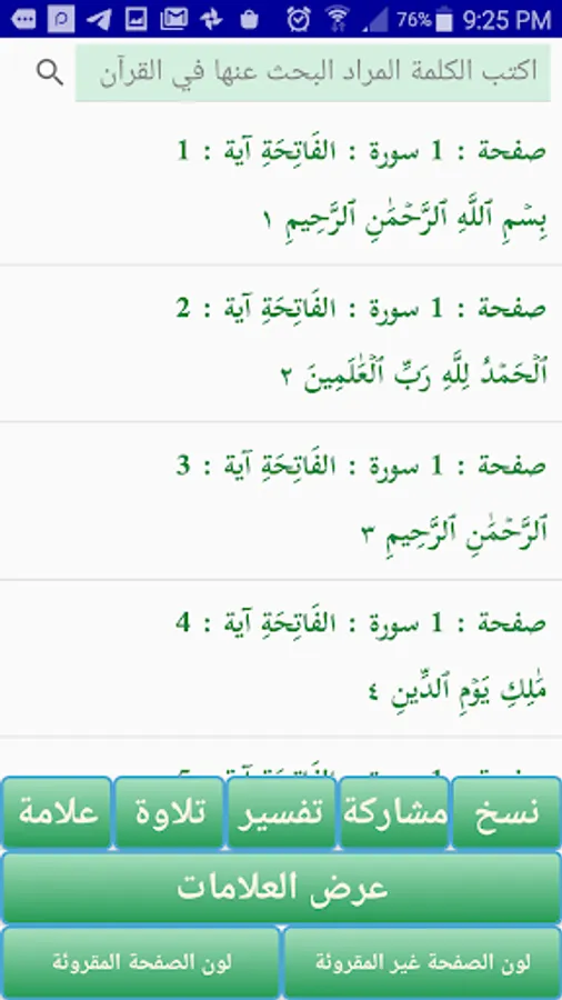 9- Search for any word in the Holy Quran by writing the desired word in the search engine on the options page