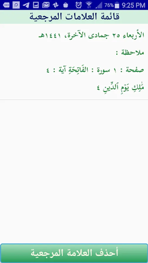 8- Display the Marks button and by clicking on it, you will see a page with a list of the marked verses with the option to delete the mark from the previously chosen verse