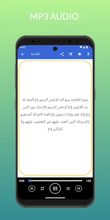 Al-Quran app is a solution of full Quran القرآنcarrying issue when you turn on your phone the sixteen line digital Islamic Holy book will be shown among the crowd of apps. Keep your AL Quran app prior at your screen home to approach at first when you really want to recite Quran Majeed. Holy Quran android free app allow you to read and listen audio recitation.