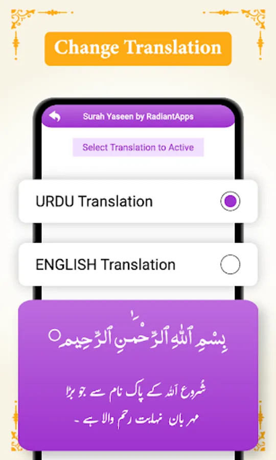 Surah Yasin of Quran Surah is an Islamic Android APP for the recitation Of Surah Yaseen.Surah Yaseen In HD Text Styles And High-Quality Offline MP3 popular Multi reciters.Surah Yasin full from Quran Pak with Offline MP3 Audio, Clear HD Text & Multi Language translation Reminder. Surah Yaseen in the best Android App with awesome features, for everyone.