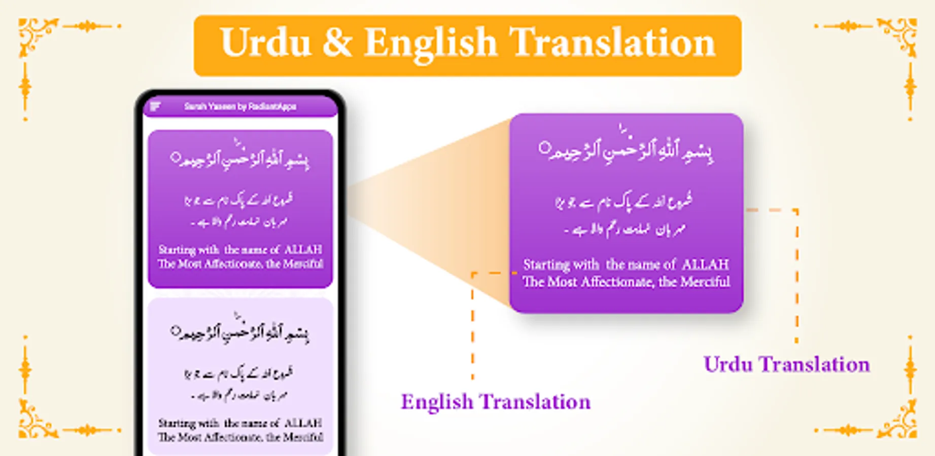 Surah Yaseen has Arabic text, English meaning, and Urdu meaning (tarjuma) as well Surah Yaseen MP3 Recitation Offline You can listen to tilwat of Surah Yasin in the voice of popular Multi reciters.