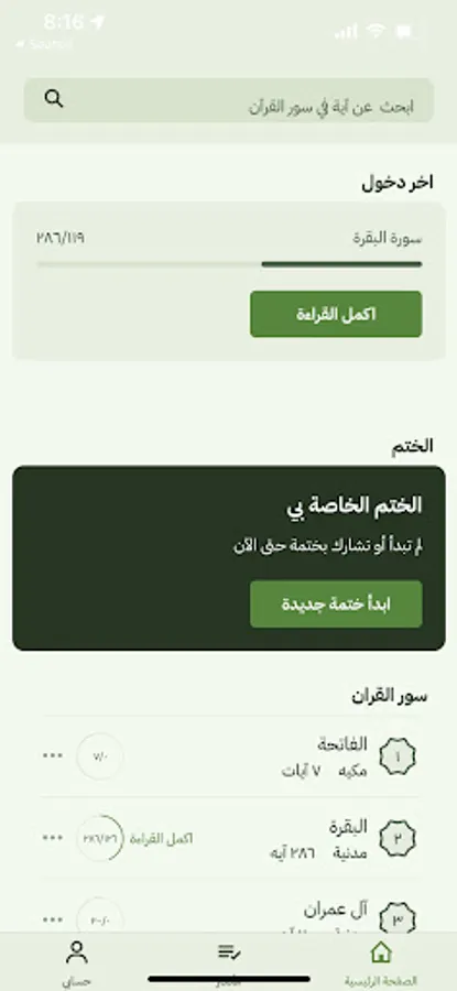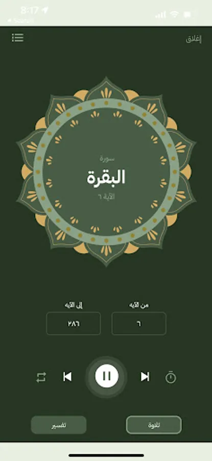 1- Recitation from the Holy Qur’an: where the reader can recite the pages of the Noble Qur’an and the reader can memorize the place he reached and move to the listening section to listen to the recitation audio.