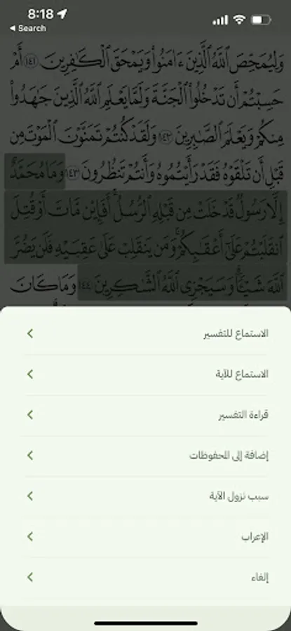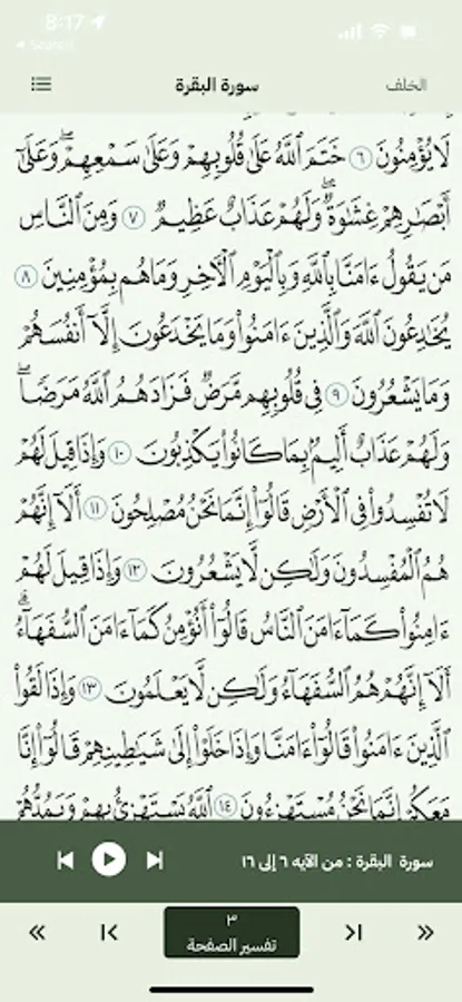 2- Explanation of the verses of the surah: it shows the reader the verse and its interpretation below it.