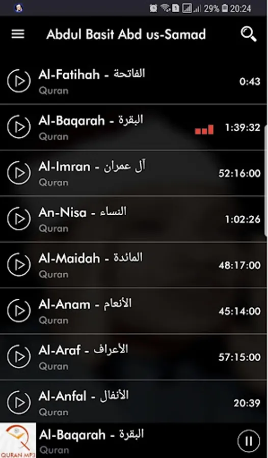 Happy Ramadan 2018 to All Muslim brothers and sisters. With you prayers listen MP3 Quran in the beautiful voice of Qari Abdul Basit Abd us-Samad. You can listen Quran Recitation offline and online mode, you just need to download all Kuran surah first time under the app then you can listen audio Quran from downloads screen.