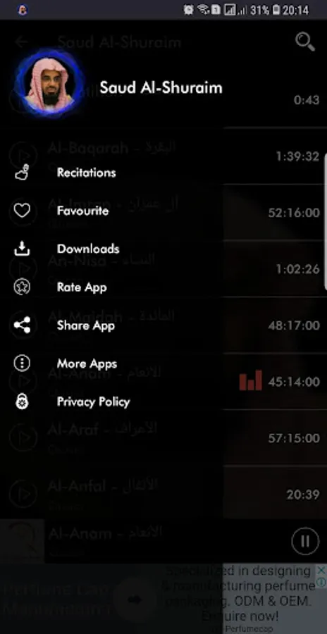 In this Ramzan 2018 liste MP3 Quran offline and online mode in the beautiful voice of Saud Al-Shuraim. To listen Tilawat Quran without internet you need to download all quran surah from app then you can listen Quran Recitation from downloads screen.