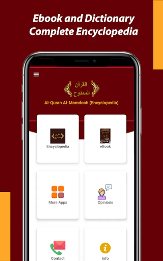 Al-Quran Al-Mamdooh Encyclopedia App gives you a few quick options to read and learn from.