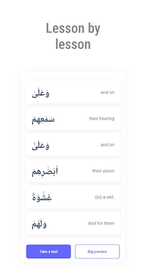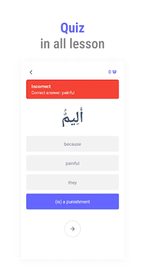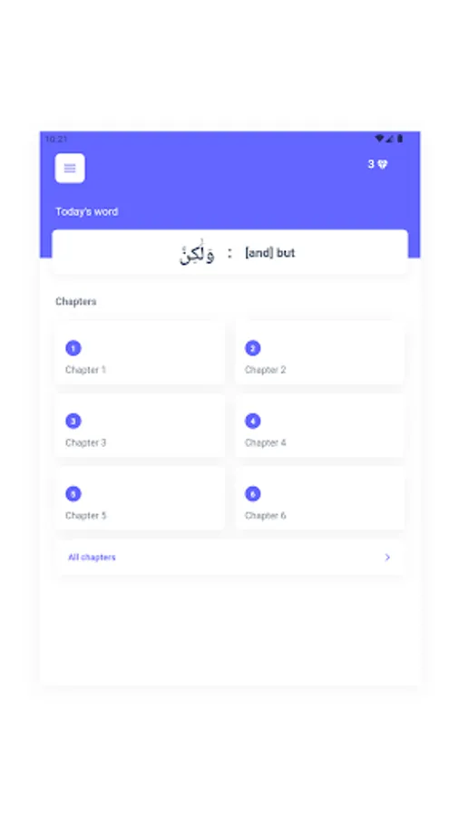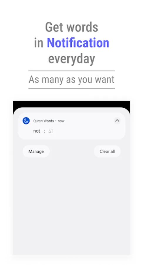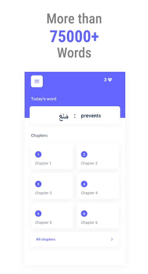 This app contains more than 75000 of words with meaning that are available in quran. There are 3 languages support. English, Bangla, Indonesian. You can also give quiz in each lesson to test your skill. And you can get words in notification with meaning.