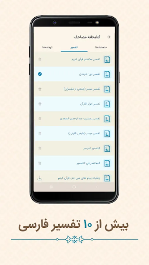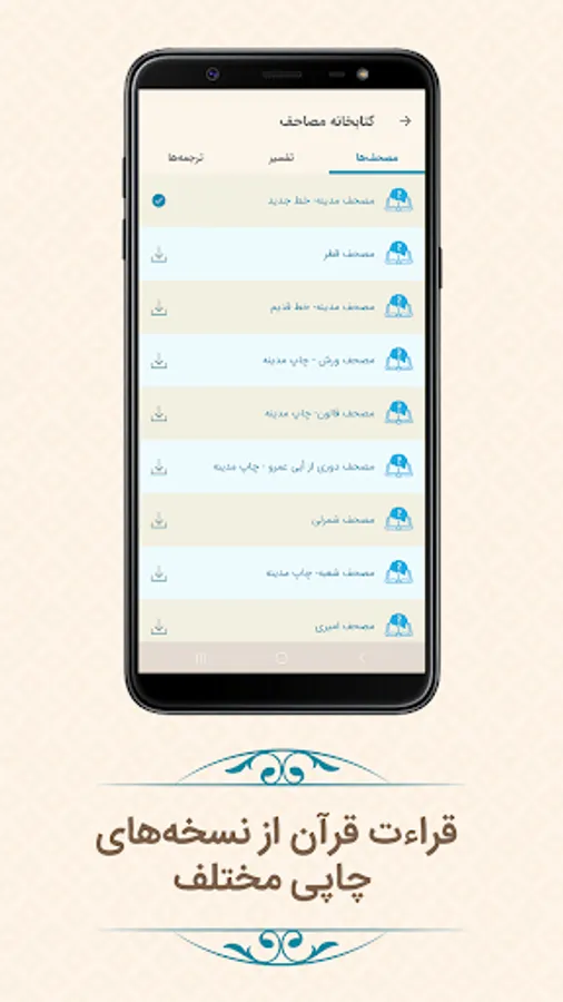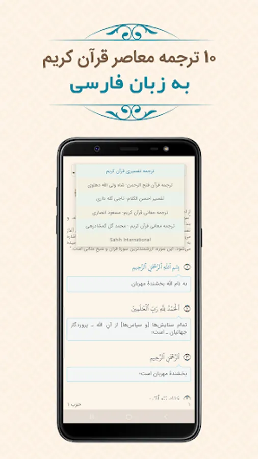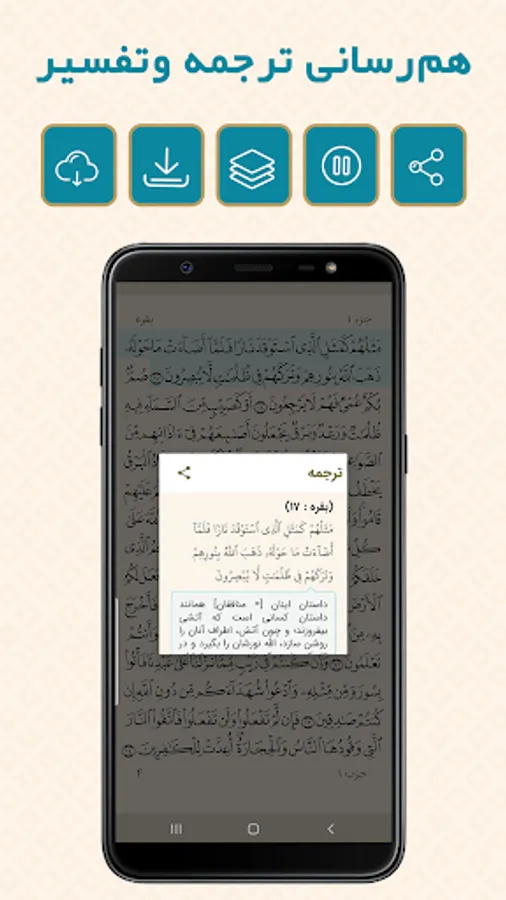 An easy-to-use application with great features including: Quranic recitations, interpretations and translations of the meanings of the Quran in Persian, night mode, bookmarks, notes and share features. Enjoy reading the Quran through this wonderful application, with an attractive interface.
