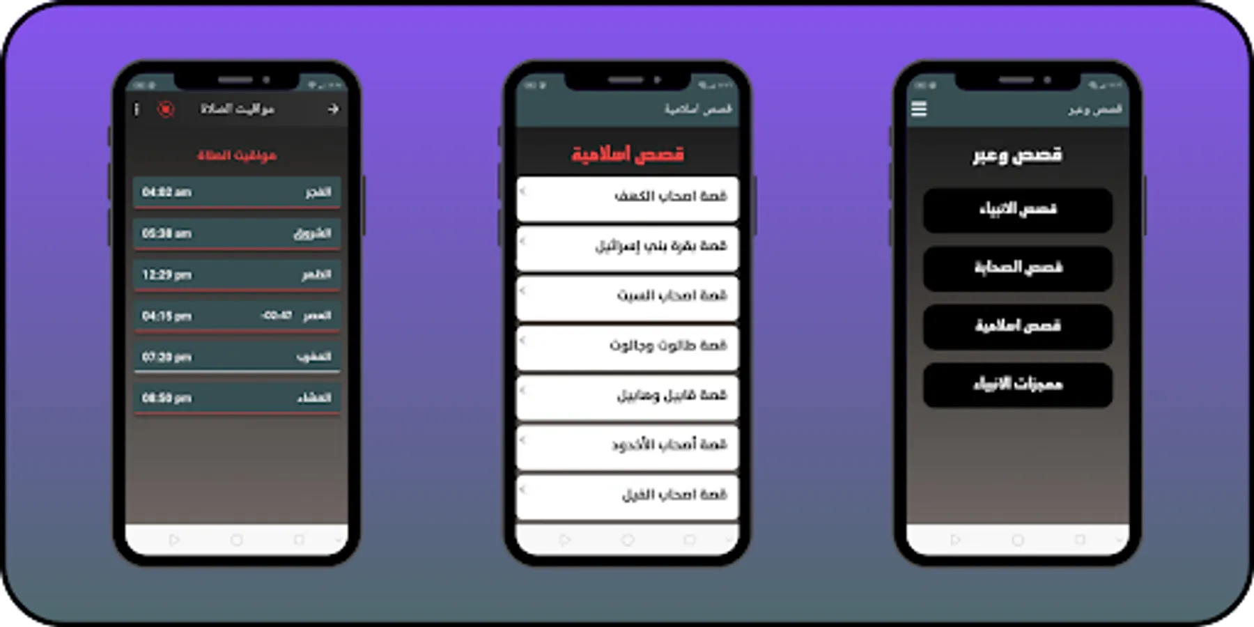 The application of prayer times, remembrance, and the Qur’an contains complete stories of the prophets, stories of the companions, Islamic stories, and miracles of the prophets.