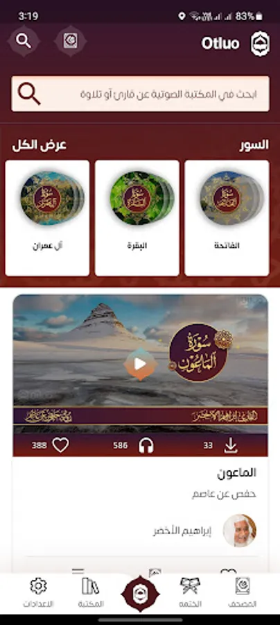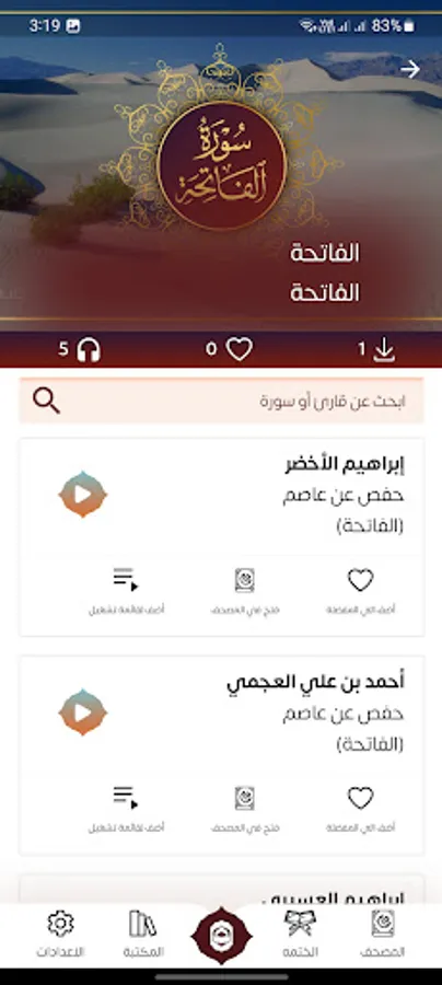 1. Audio library: This library contains more than 13,000 high quality audio files in mp3 format for more than 150 reciters*.you can Favourite or save what you want on your device.