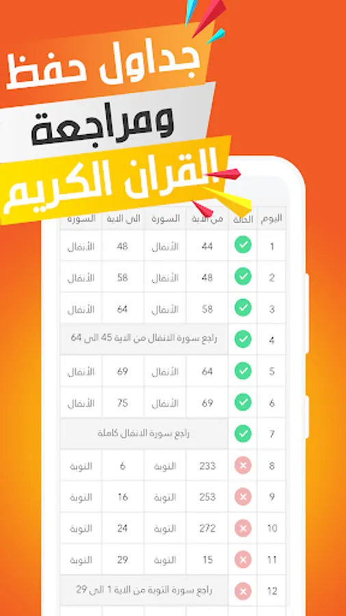 Ensures that you quran memorization schedule, Where the application provides quran memorization techniques, In addition it provides the possibility daily quran versa or daily quran reading and provides the possibility memorize by versa, There is also an explanation for quran memorization plan (planner).