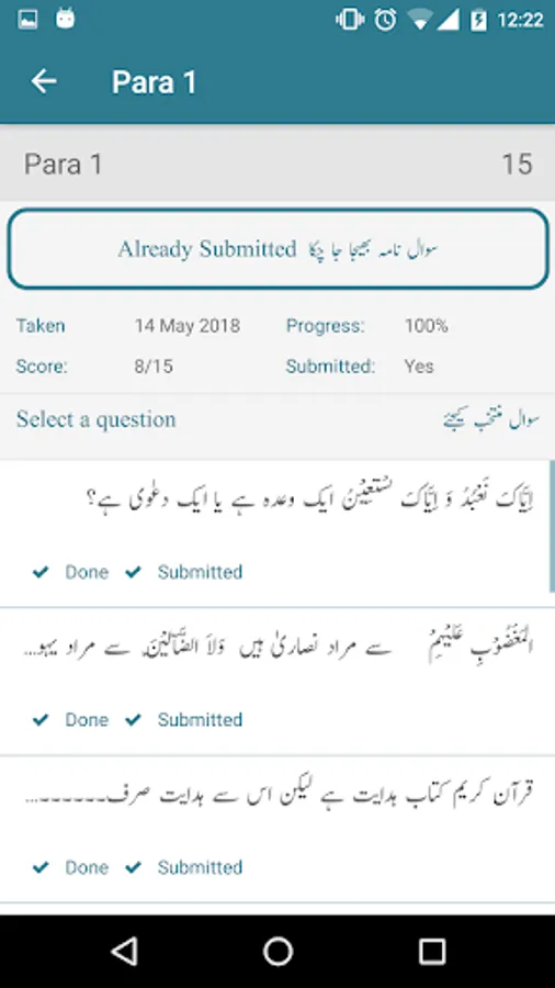 This application from Anjuman-e-Khuddaam Ul Quran (Quran Academy) takes the participants through a series of tests based on the Holy Quran allowing them to test their understanding and knowledge of the Holy Quran.