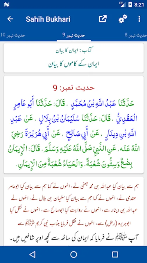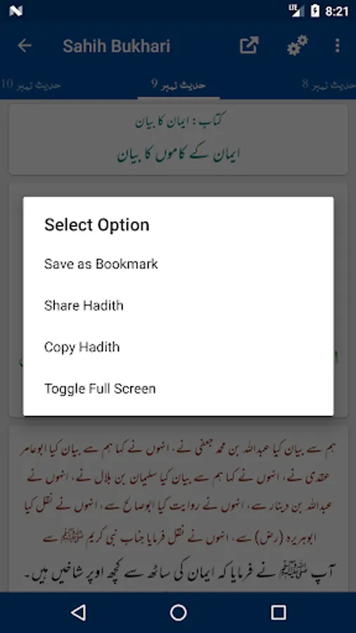 - Copy/Share Hadith with multiple options