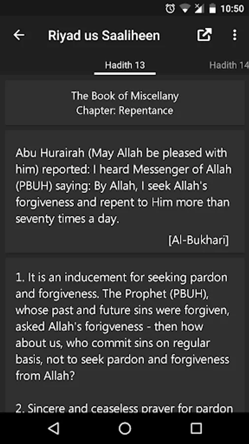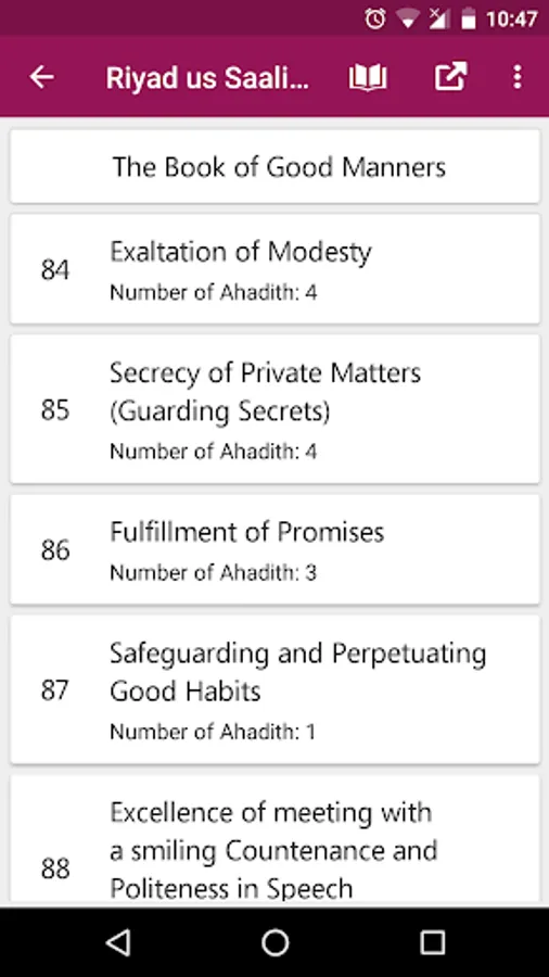 This app features the English translation and commentary of Riyad us Saaliheen written by Hafiz Salahudin Yosuf.