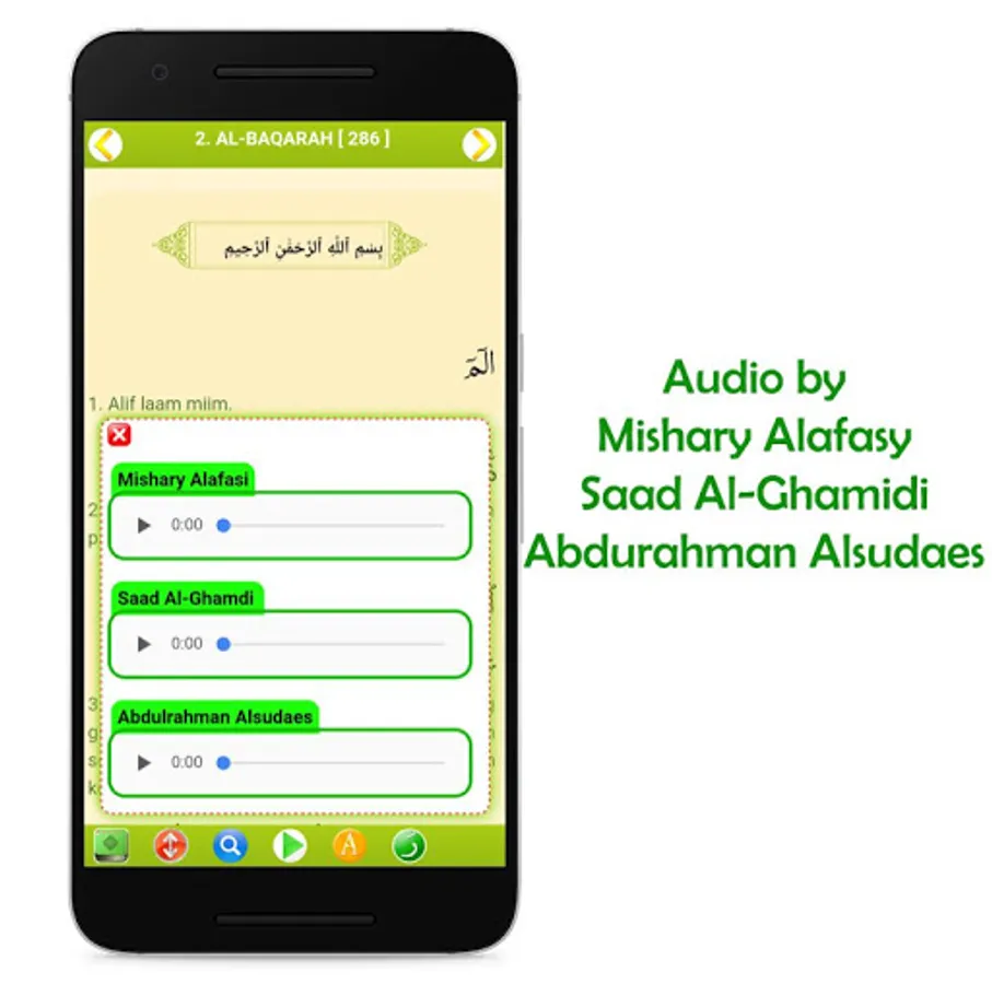 - Quran with audio by 3 famous shaykhs ie Sheikh Mishary Alafasy, Shaykh Saad Al Ghamidi, Shaykh Abdurahman Al Sudais