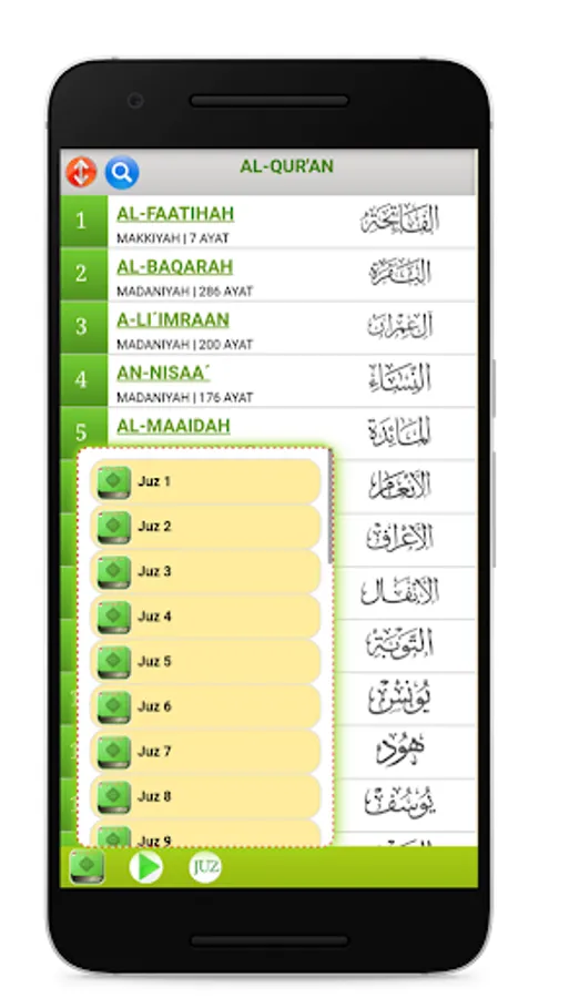 - There is a Search feature in each of its surahs, making it Easier for you to search for the Holy Koran you seek, by typing numbers or letters, words and sentences
