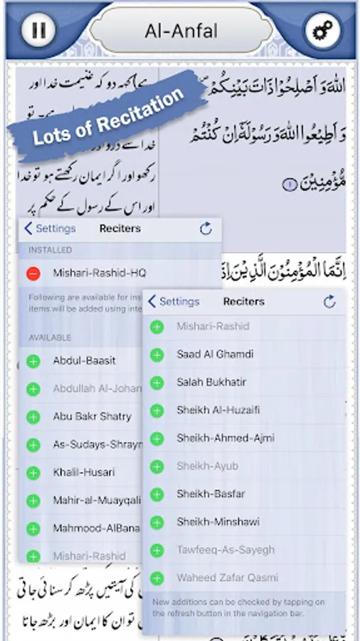 ◉ Option to update existing content (for fixing errors in Quran text, translation or audio)