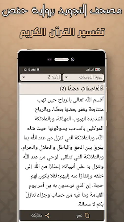 Wait for other updates to enrich the version of the Qur’an intonation with the narration of Hafs with the interpretation of the Noble Qur’an.