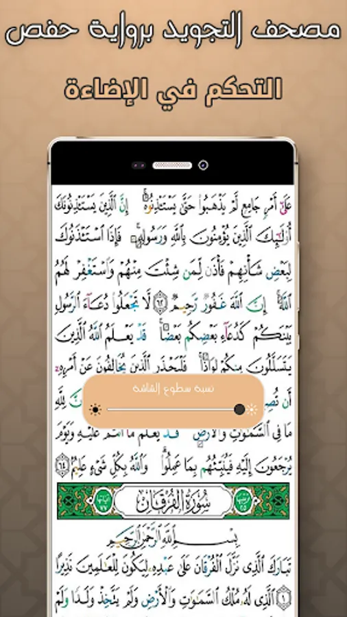 The program keeps the screen lit for those who want to continue reading for a long time in the Tajweed Quran