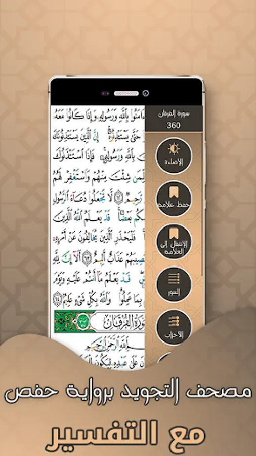 The ability to put a mark on a specific page of the Qur’an intonation in the narration of Hafs and move to it whenever you want