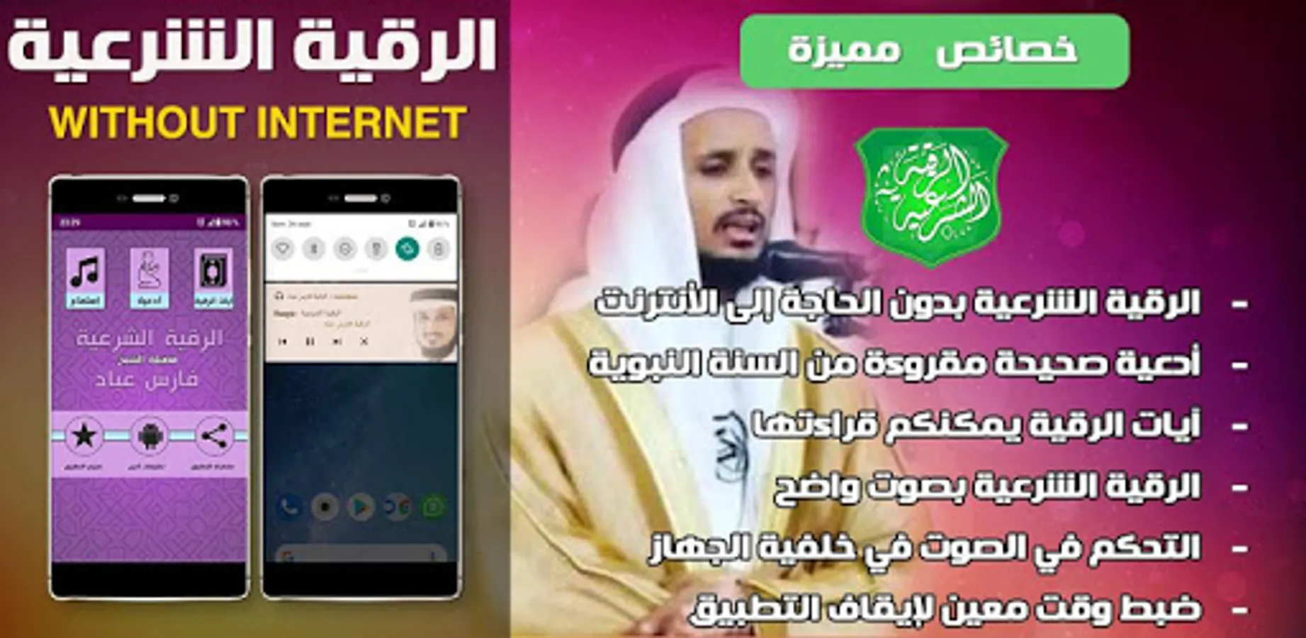 Free islamic application for any muslim to read and listen to ruqyah with quran recitation of sheikh Fares Abbad.
