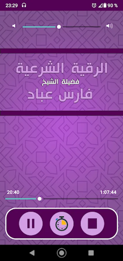 • Pausing for incoming phone call when you are playing ruqyah Faris Abad.
