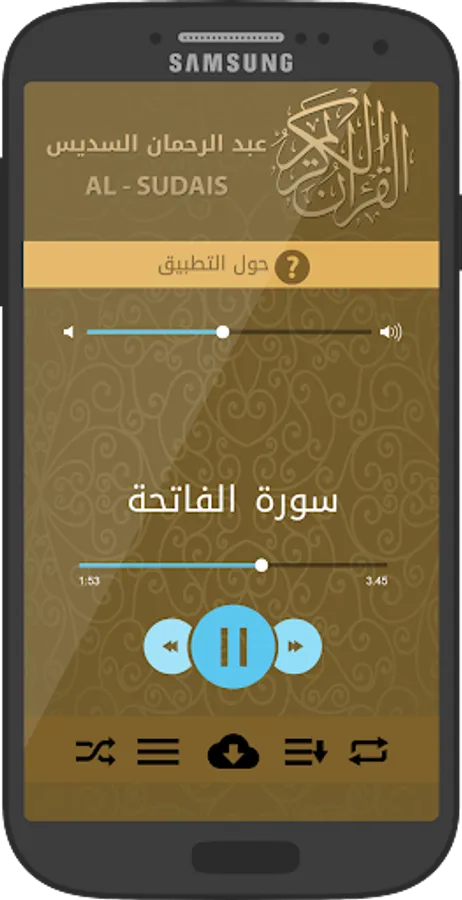 Free and supported islamic app of holy quran recitation of sheikh Abderrahman Sudais hafs from asim, this app is very important for any muslim to listen the koran, with this app you can listen and download the holy quran as mp3 files with recitation of sheikh Abderrahman Sudais.