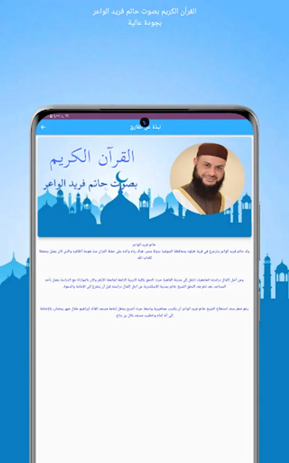Now you can use the application with ease and listen to the surahs of the Noble Qur’an with the voice of Sheikh Hatem Farid Al-Waer in high quality and live a wonderful case of faith in which you delve into the meanings of the Noble Qur’an, enjoying the voice of Sheikh Hatem Farid Al-Waer, who transports you to another world with his distinctive voice.