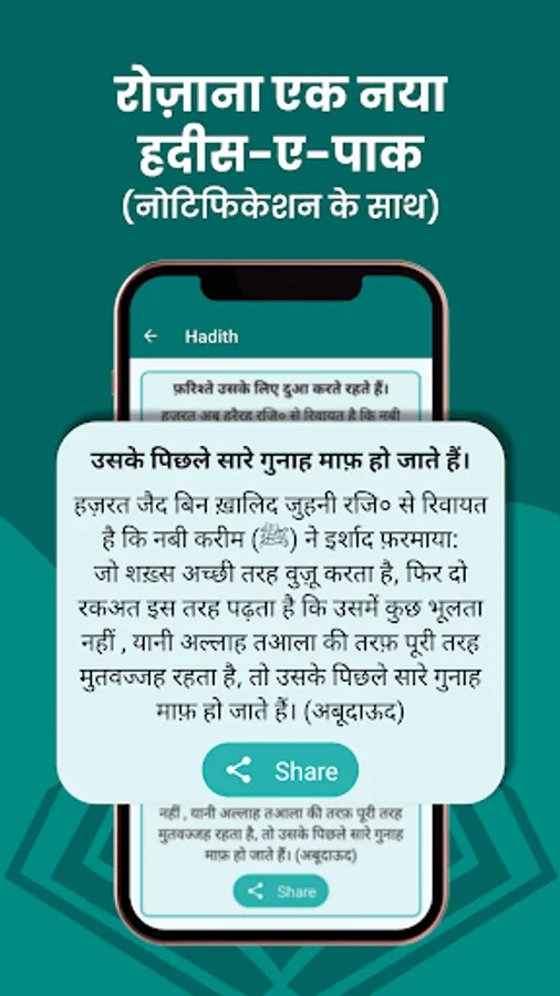इसके अलावा इस Small Surah की ऐप मे हदीस-ए-पाक की Futures नोटिफिकेशन के साथ भी दी गई है । इसमे रोज़ाना एक हदीस-ए-पाक हिन्दी मे अपलोड की जाती है।