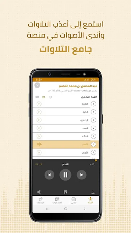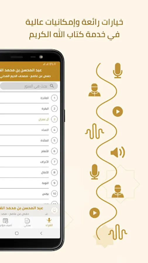 This global platform is featured with ease of use, being light and fast, having large number of recitations including rare recitations, high quality audio files suitable for users and also radio stations, TV channels, websites and applications.