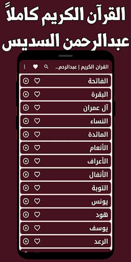 After completing the installation of the application, open it and listen to the surahs of the Noble Qur’an with Sheikh Abdul Rahman Al-Sudais in high-quality recitation in mp3 format.