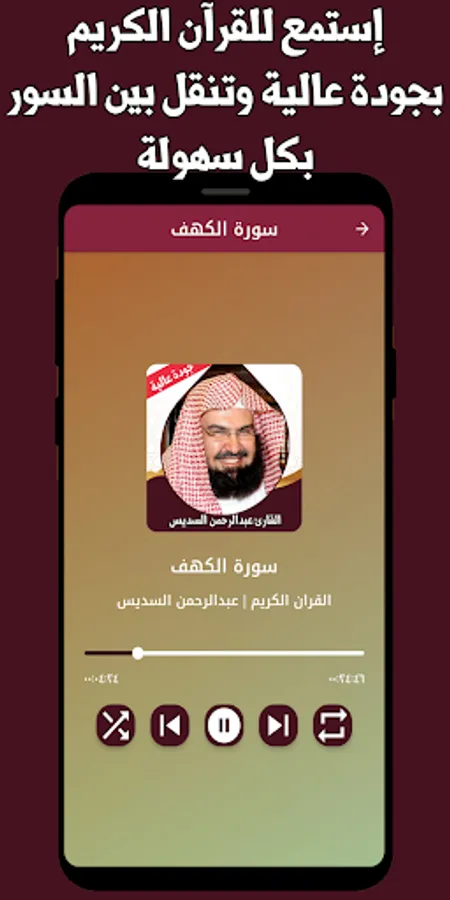 The application is completely free, as after installing the application from the store, you will be able to listen to the Noble Qur’an with the voice of Sheikh Abdul Rahman Al-Sudais with the narration of Hafs from Asim with ease.