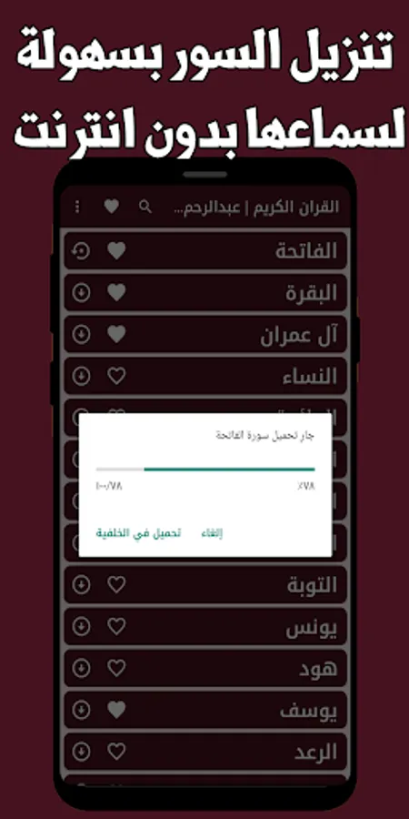 The interface of the application of the Noble Qur’an with the voice of Abdul Rahman Al-Sudais is very simple, so you will not suffer any difficulty from downloading the program from the store until you start using the program to download the Noble Qur’an with the voice of Abdul Rahman Al-Sudais in listening to the surahs of the Noble Qur’an without the Internet.
