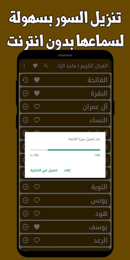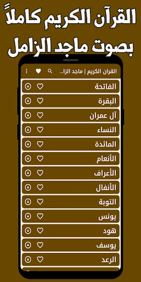 Simple and elegant interfaces where you can choose the surahs that you like, add them to the favorites list, and listen to them without the Internet, with the voice of the reciter Sheikh Majed Al-Zamil, who has a wonderful voice that makes you humble to hear the verses of God.